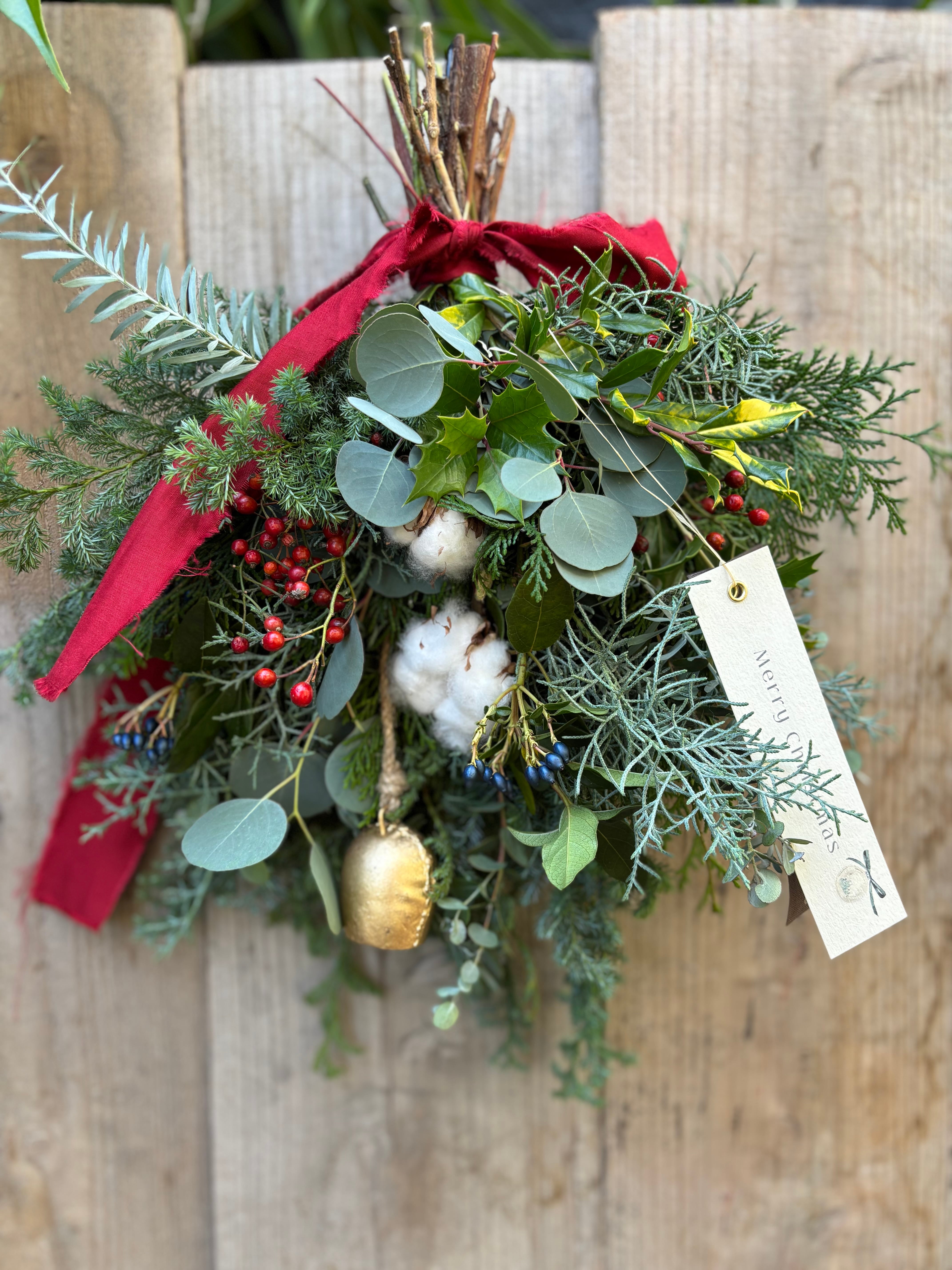 針葉樹各種、ユーカリ、ヒイラギ、コットン、実もの(赤・ブルー系)、