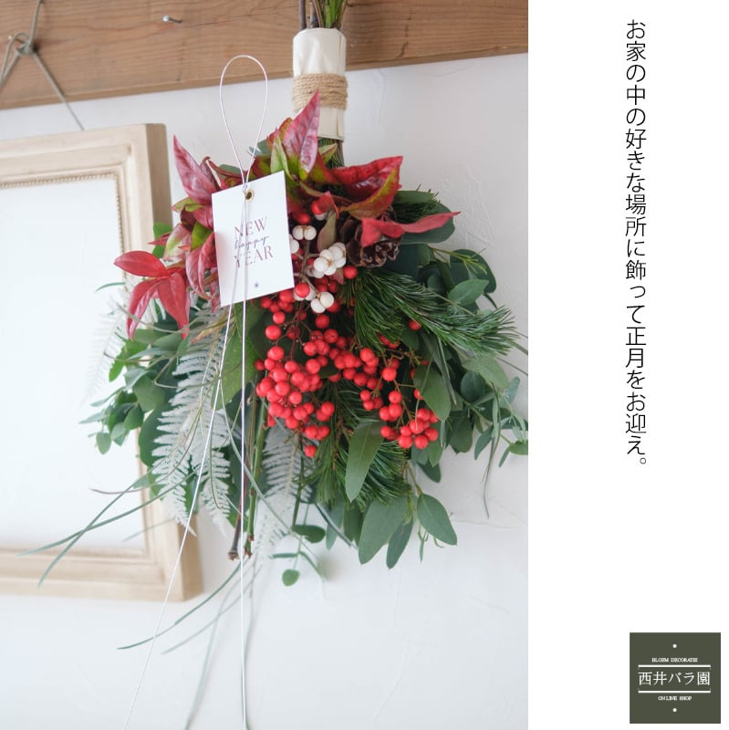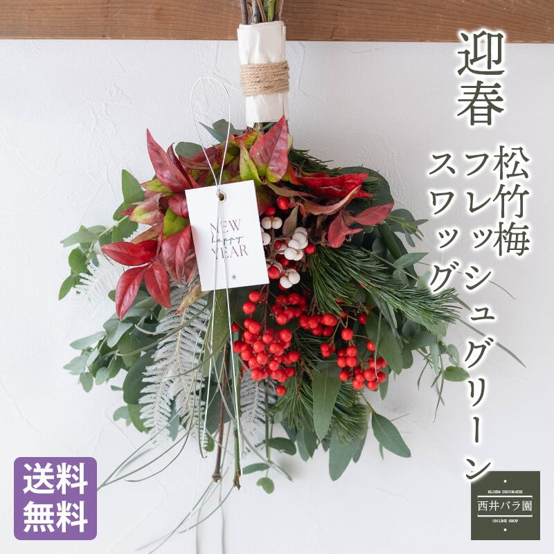 - 迎春を彩る生花のスワッグ